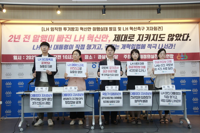 또 경실련은 2년 전 국회는 LH임직원 투기 방지를 목표로 하는 이른바 ‘LH 5법’을 통과시켰지만 제대로 이행되지 않고 있다고 지적했다.