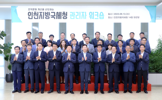 인천국세청은 13일 민주원 인천국세청장과 세무서장 및 인천청 간부 105명 참석 하에 ‘조직문화 개선을 선도하는 인천지방국세청 관리자 워크숍’을 열었다고 밝혔다.