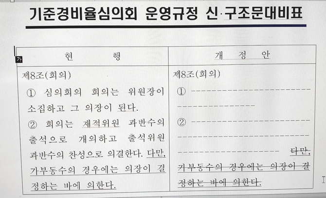 개정안은 단서규정인 ‘다만, 가부동수의 경우에는 의장이 결정하는 바에 의한다’를 삭제해 법제처의 법안 입안 심사기준에 맞춘다는 방침이다.