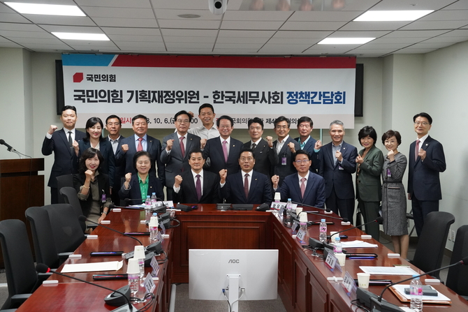 (조세금융신문=이지한 기자) 한국세무사회(회장 구재이)는 지난 6일 국회에서 김상훈 기획재정위원회 위원장과 류성걸 조세소위원회 위원장, 박대출 국민의힘 정책위원회 의장 등 국민의힘 핵심 중진의원들이 참석한 가운데 '국민의힘 기획재정위원-한국세무사회 정책간담회'를 가졌다.