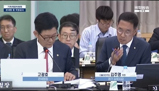 국회 기획재정위원회 소속 김주영 의원(더불어민주당)이 12일 정부 대전청사에서 열린 관세청 국정감사에서 일본산 활어차의 해수 무단방류 실태를 지적했다.