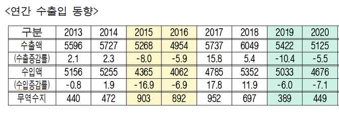 실제 2020~2021년처럼 수출 하락-반등이 급격했던 구간이 2016~2017년 구간이었는데, 2016년 수출은 –5.9%, 2017년 15.8%였으니 21%p나 변동이 생긴 셈이다.