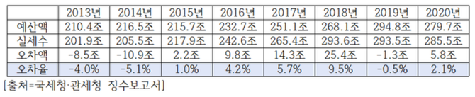 이러한 해명은 2018년 이후 대규모 세수오차 때마다 나오는 기재부의 단골 변명이다.