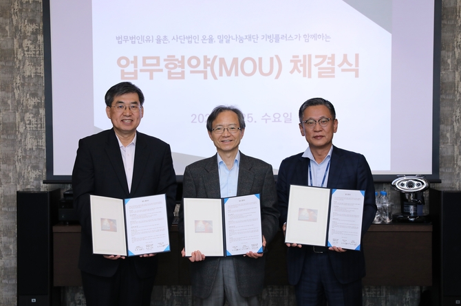 (조세금융신문=고승주 기자) 법무법인 율촌(대표변호사 강석훈)이 지난 25일 사단법인 온율과 밀알나눔재단 기빙플러스(대표이사 정형석) 간 취약계층 자립 지원과 ESG 경영 실행을 위한 3자 업무협약을 맺었다고 26일 밝혔다.