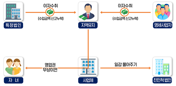 지역 내 영세사업자나 주민들을 상대로 금전을 대여해 주거나, 특수관계법인 및 타 지역 소재 법인에 수백억원에 상당하는 거액의 사업자금을 대여하고 관련 이자소득을 전액 누락했다.