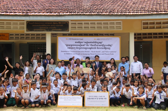 캄보디아에서는 캄퐁통 및 프놈펜 지역 저소득 가정 아동들에게 태양광 랜턴 800개, 금융동화 팝업북 400권, 원목 독서대 700개를 전달했다.