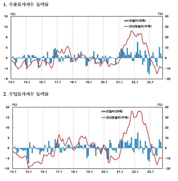 수출입물가 영향을 미치는 요인과 관련해 한국은행 관계자는 “수출입물가가 오르면 국내 소비자물가 상승압력으로 작용한다”면서 “환율 외에도 수출입물가에 영향을 미치는 요인이 다양하게 있을 수 있다”고 설명했다.