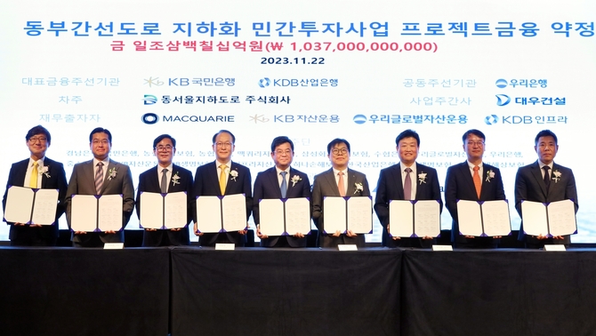 (조세금융신문=진민경 기자) 우리은행이 ‘동부간선 지하화 민간투자사업’을 위한 총규모 1조370억원 금융주선을 마무리하고 관계사 간 금융약정을 체결했다고 22일 밝혔다.
