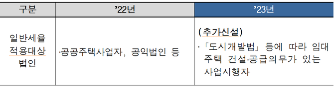 법인 일반세율 특례 적용 대상에 임대주택 사업시행자에 대한 세부담도 크게 낮아진다.
