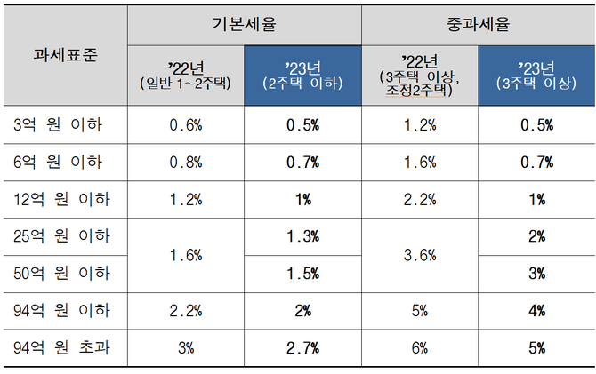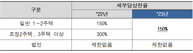 다주택자에 대해 최대 300%를 적용하던 주택분 세부담 상한율도 150% 일괄 하향 적용된다.