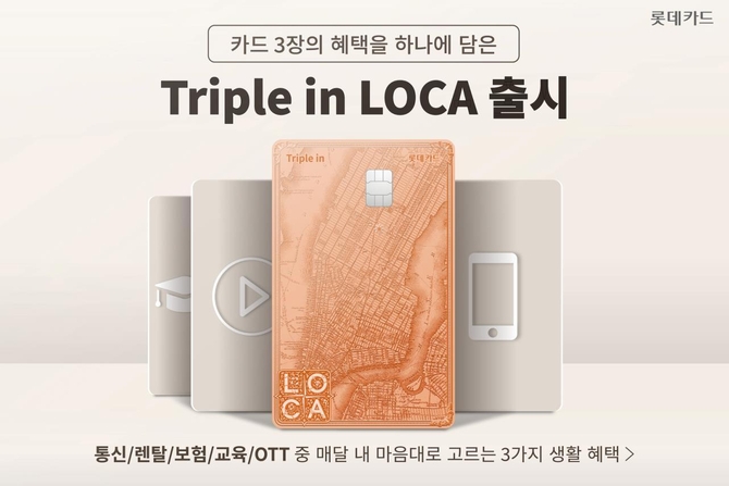 (조세금융신문=송기현 기자) 롯데카드는 7일 고객이 소비 패턴 변화에 따라 직접 생활업종 3가지를 골라 혜택을 받을 수 있는 'Triple in LOCA'(트리플 인 로카) 카드를 출시한다고 밝혔다.