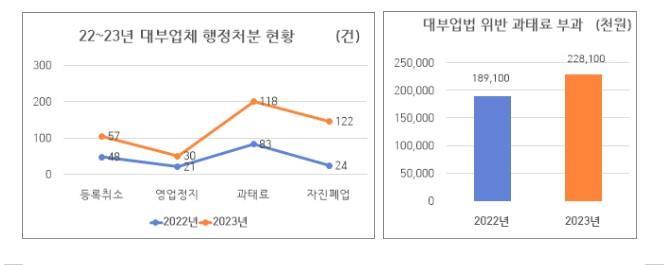 행정처분 건수는 작년보다 35%(53건) 증가했고, 과태료 부과 건수와 금액은 각각 작년보다 42.1%(35건), 20.6%(3천900만원) 늘었다.