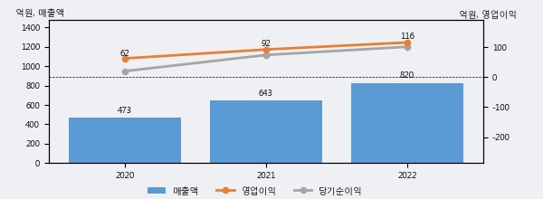 최근 실적을 살펴보면 2022년 매출액이 최근 3년 중 가장 높은 실적을 기록했음을 알 수 있다. 이전 최고 실적이었던 2021년 보다도 27.6%(177억 7천만원) 늘어난 것으로 나타났다.