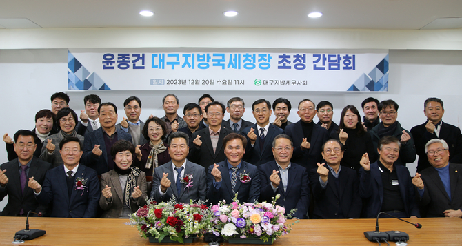 이날 간담회에는 대구지방세무사회 이재만 회장, 류영애 부회장, 서정철 부회장, 김종구 고문, 김영봉 고문, 최상백 고문 등 임원 24명이 참석했다. 대구국세청은 윤종건 청장, 이상락 성실납세지원국장, 이광수 소득재산세과장, 권태혁 재산팀장, 김혜진 소득팀장이 참석해 자리를 빛냈다.