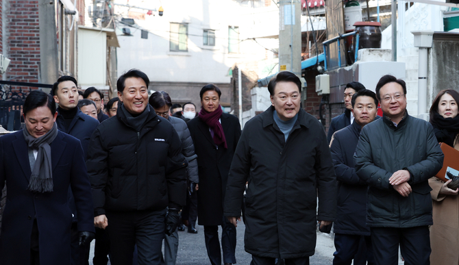 윤 대통령은 이날 도심 노후 주거지 상황을 점검하고, '모아타운' 등 소규모 정비사업에 대해 “도심 내 주택 공급 활성화를 위해 재개발·재건축 사업절차 등에 대한 원점 재검토”를 주문했다.