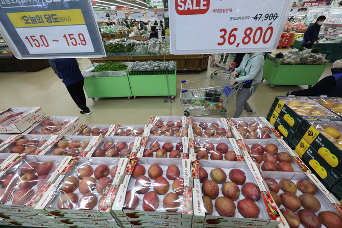 신선과실(9.7%) 등이 크게 올라 신선식품 지수는 전년보다 6.8% 뛰었다.