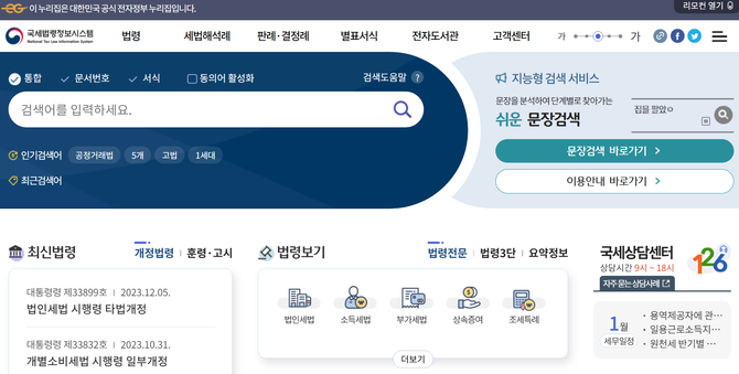 (조세금융신문=고승주 기자) 세법‧행정규칙‧판례‧국세청 발간책자 등을 망라한 국세법령정보시스템 사이트가 사용자 편의성을 대폭 강화해 새로운 모습으로 거듭났다.
