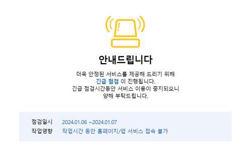 6일 국토교통부에 따르면 알뜰교통카드 모바일 애플리케이션과 홈페이지는 이날 오전 11시께부터 긴급 점검에 따라 서비스 이용이 중단된 상태다. 점검 기간은 7일까지 이틀간으로 안내됐다.
