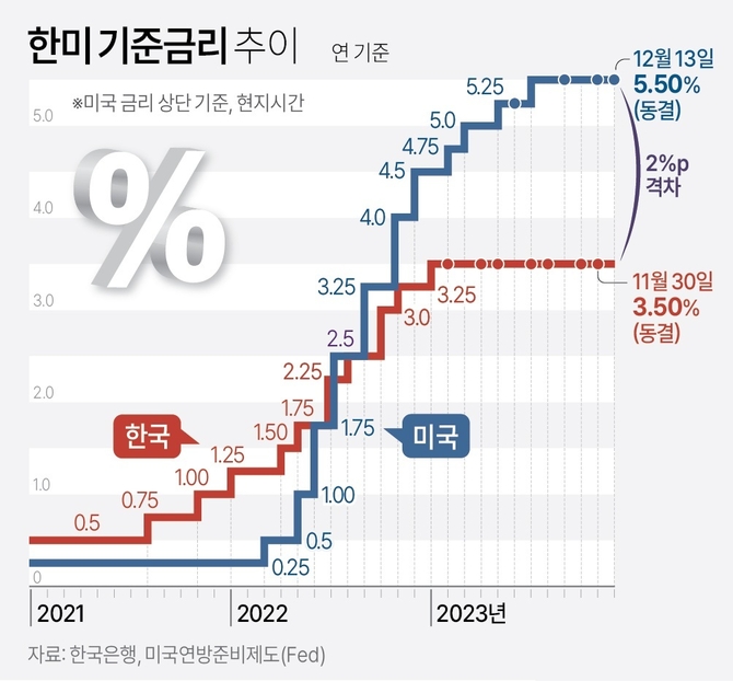 장민 한국금융연구원 선임연구위원은 "경제 성장이 조금씩 나아지는 것 같지만 불확실하니까 인상은 불가능할 것"이라며 "그렇다고 인플레이션(물가 상승)이 여전히 많이 안 떨어지는 데다 미국의 현재 통화정책 등을 고려할 때 내리기도 어렵다. 따라서 동결 확률이 100%"라고 설명했다.