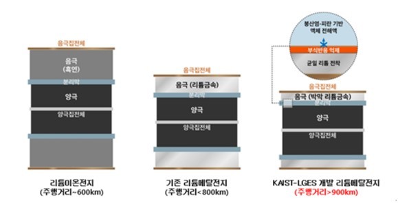 리튬메탈을 음극재로 사용할 때 시간이 지나면 표면에 덴드라이트가 발생해 액체 전해액과 만나서 화재 위험성이 있었다. 그런데 LG에너지와 카이스트는 붕산염,피란을 사용한 액체 전해액으로 이를 해결했다. 양극재로는 단결정 하이니켈 양극재를 사용하고 음극재는 흑연에서 리튬으로, 전해액은 특수전해질로 변경적용 했다. 과거 리튬메탈을 음극재로 적용한 이후 30여 년이 지난 뒤에 성공한 것이다.