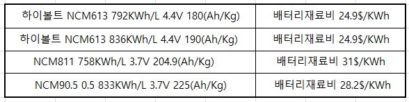 ◇ 하이볼트 미드니켈 배터리에 단결정 양극재만 사용한다