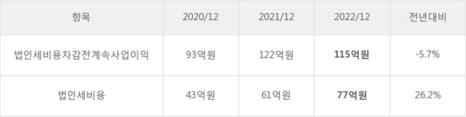 [표]SJM홀딩스 법인세 납부 추이