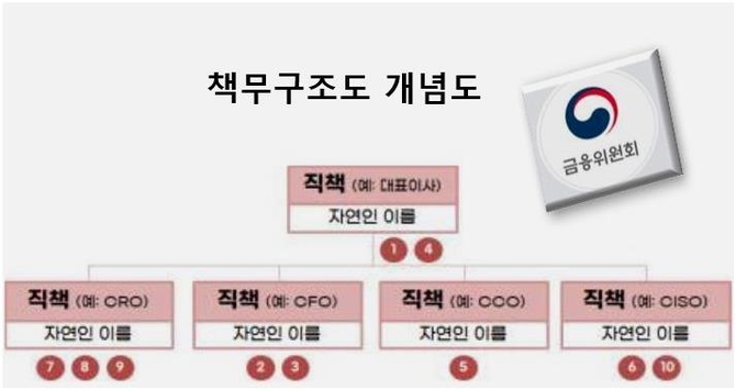 작년 12월 국회를 통과한 지배구조법은 임원별 내부통제 책임을 사전적으로 기재해두는 '책무 구조도(responsibilities map)' 도입을 핵심으로 한다. 책무 구조도에서 금융회사 주요 업무에 대한 최종 책임자를 특정함으로써, 내부통제 책임을 하부에 위임할 수 없도록 하는 원칙을 구현하도록 한 것이다.
