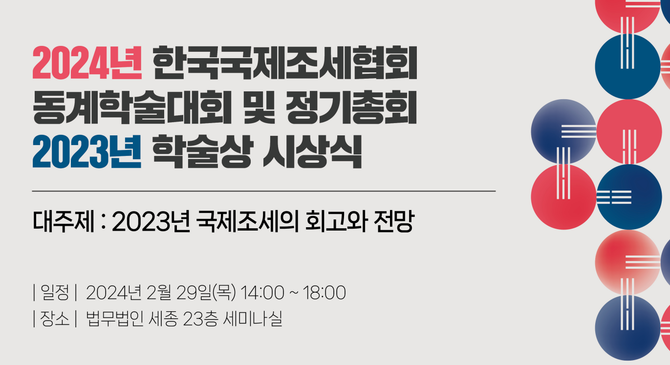 (조세금융신문=고승주 기자) 한국국제조세협회(IFA KOREA)가 오는 29일 오후 2시 서울 종로구 법무법인 세종 23층 세미나실에서 2024년 동계학술대회를 개최한다.