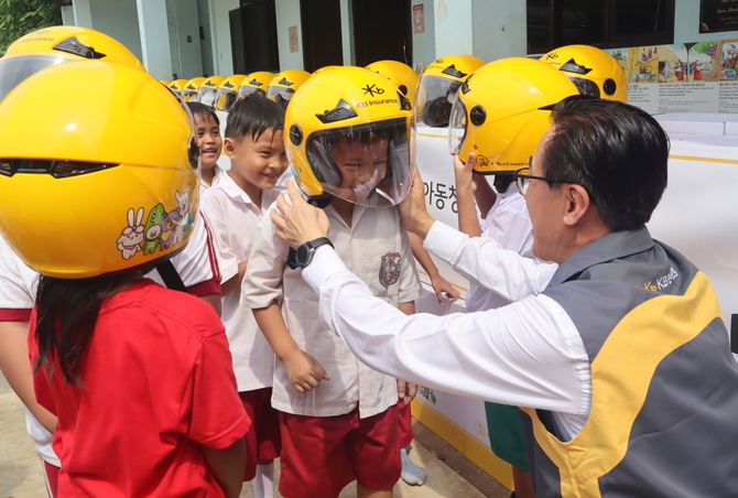 ‘인도네시아 안전모 지원사업’은 올해로 2회째 진행되는 KB손보의 글로벌 사회공헌 활동으로, 이륜차 이용률이 높은 인도네시아의 이륜차 사망사고를 감소시키고 안전한 교통문화를 정착시키기 위해 기획됐다.