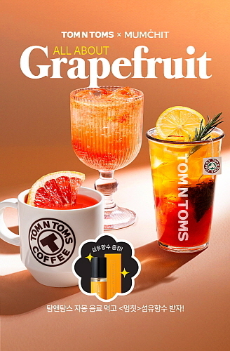 커피전문점 탐앤탐스는 프리미엄 퍼퓸 브랜드 ‘멈칫’과 손잡고 준비한, 2월을 상큼하게 물들일 자몽 콜라보 프로모션에 초대했다. 전국 직영 매장 18곳(정자역점 외)에서 이벤트 음료 포함 15,000원 이상 구매하면, 재고 소진 전까지 증정품 혜택을 제공하는 내용이다.