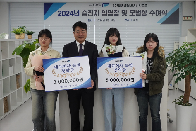 19일 파이낸셜데이타시스템이 임직원 자녀 중 대학생 3명, 중고등학생 2명에게 장학금을 전달했다고 밝힌 것인데, 특히 FDS 대표 홍기문 대표가 장학금 전액을 사비로 출연해 그 이목이 쏠리고 있다.
