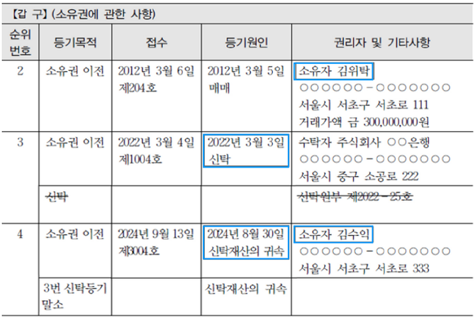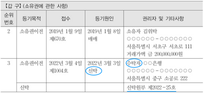 [ 신탁 설정 시 등기사항전부증명서(갑구) 예시 ]
