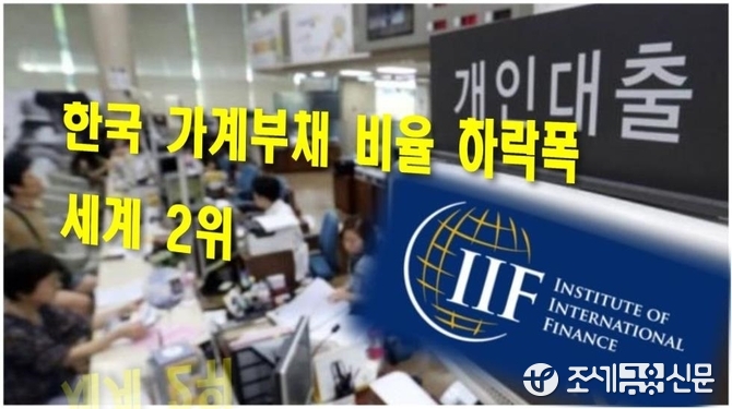 3일 국제금융협회(IIF)의 세계 부채(Global Debt) 최신 보고서에 따르면, 작년 4분기 기준으로 세계 34개 나라(유로 지역은 단일 통계)의 국내총생산(GDP) 대비 가계 부채 비율을 조사한 결과 한국(100.1)이 가장 높았다. 이어 홍콩(93.3%)·태국(91.6%)·영국(78.5%)·미국(72.8%)이 2∼5위를 차지했다.