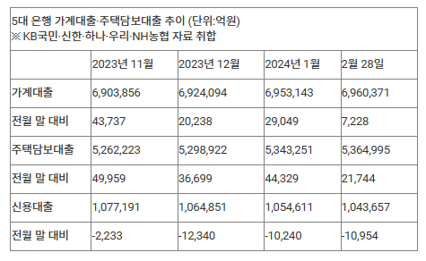 연초 은행권 가계대출 증가세도 다소 안정되면서 '100% 하회' 실현에 힘을 싣고 있다. 5대 은행의 2월 말 기준 가계대출 잔액은 696조371억원으로, 1월 말보다 7천228억원 늘었다. 작년 5월 이후 10개월 연속 불었지만, 월간 증가 폭이 1월보다 크게 줄어 작년 6월 이후 8개월 만에 최소 수준에 이르렀다.