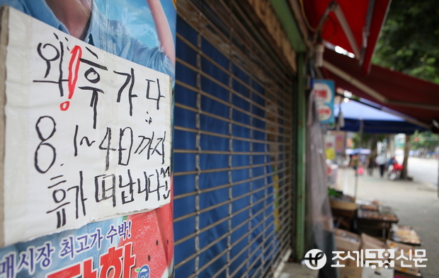 (조세금융신문=전한성 기자) 휴가철이 한창인 4일 오후 서울 영등포구 영등포전통시장 한 상점에 휴가로 인한 휴무 안내 공고문이 붙어 있다.