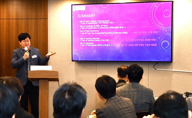 김 교수는 앞으로 전 세계적으로 부상할 이슈와 미디어 산업전망과 관련 ▲코로나19 이후의 신질서와 지속가능성에 대한 관심 ▲노령화와 인구감소로 인한 비인간 애착대상의 확대 ▲테크놀로지의 발전에 따라 인간 경험과 감각의 확장 ▲나노기술의 발전에 따른 물질과 정신의 경계 약화 ▲테크노스트레스와 기술 문제 해결을 위한 기술에 대한 관심 등을 키워드로 제시했다.
