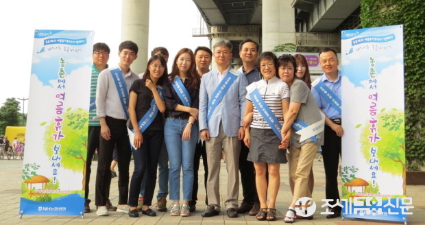 이날 NH농협생명 임직원 20여명은 시민들에게 홍보전단지와 비치발리볼 등을 나눠주며 ‘평생친구NH어린이보험’을 알리는 홍보대사로 활동했다.