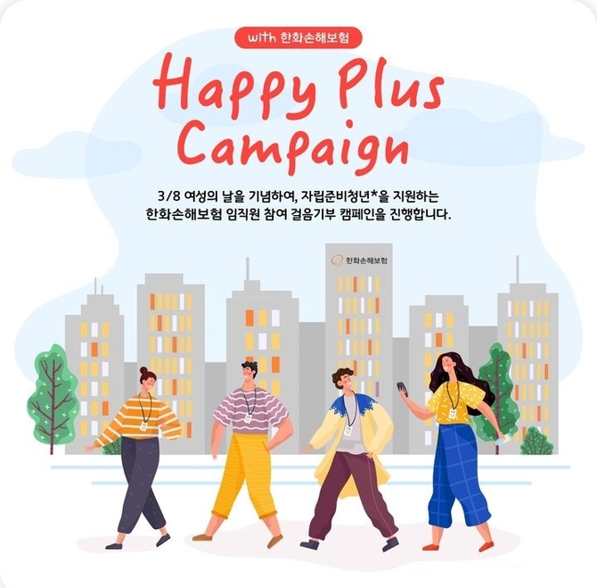 (조세금융신문=김종태 기자) 한화손해보험은 임직원이 참여하는 '해피 플러스(Happy Plus) 걸음기부' 캠페인을 진행한다.