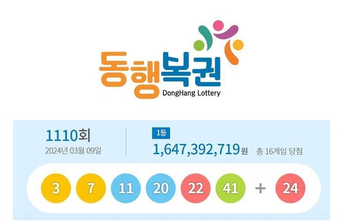 (조세금융신문=박청하 기자) 제1110회 로또복권 추첨에서 '3, 7, 11, 20, 22, 41'이 1등 당첨번호로 뽑혔다. 2등 보너스 번호는 '24'이다.