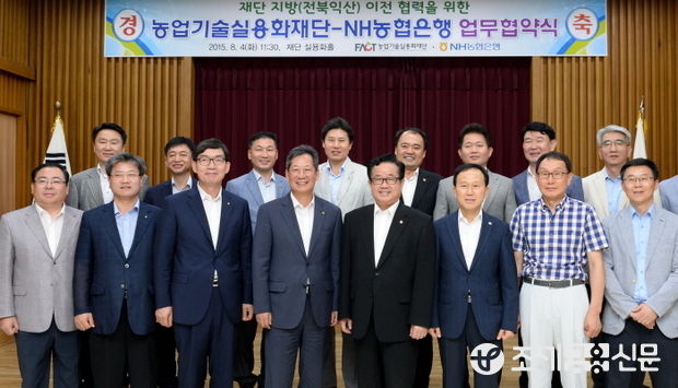 협약식에 참석한 농협은행 박석모 부행장은 “농업기술실용화재단 등 지방의 혁신도시로 이전하는 많은 공공기관들이 협력 파트너로 NH농협은행을 선택하고 있다”며, “농협은행은 공공기관 전문은행으로서 맞춤형 금융서비스와 더불어 재단 임직원에 대한 다양한 금융지원으로 익산 신청사로의 이전이 원활하게 추진될 수 있도록 최선을 다할 것”이라고 말했다.