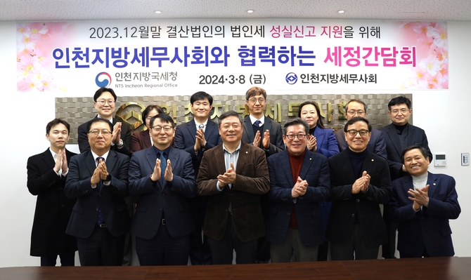 (조세금융신문=이지한 기자) 인천지방세무사회(회장 김명진)는 지난 8일(금) 인천지방세무사회 회의실에서 인천지방국세청(청장 박수복)과 2023년 12월말 결산법인에 대한 법인세 신고 간담회를 가졌다.