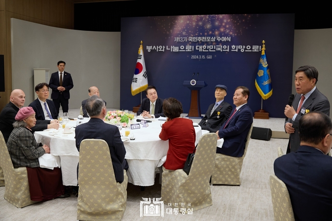 당시 오찬장에는 윤석열 대통령을 비롯해 수상자들의 박수 소리가 크게 울려퍼졌다는 전언이다.