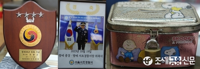 "가정형편이 어려운 경찰관 자녀에게 장학금을 지급했고 2023년 10월 '명예 서초경찰서장'으로 위촉이 됐어요. 명예경찰 4년만에 총경으로 승진한 케이스 지요.(웃음) 그 결과 78주년 경찰의 날을 맞아 행안부장관 표창장, 2020년에 이어 두번째인 2022년 10월에도 상을 수상하기도 했습니다"라고 덧붙였다.