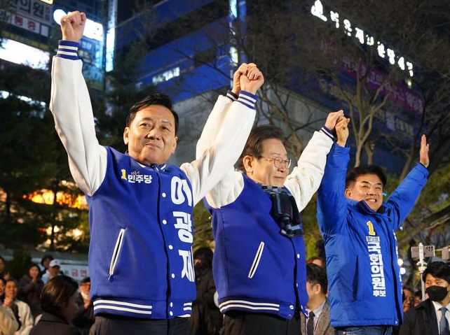 (조세금융신문=고승주 기자) 더불어민주당 이광재 분당갑 후보와 김병욱 분당을 후보가 19일 오후 야탑역 1번 출구에서 열린 이재명 당대표와 거리 유세에 나섰다.