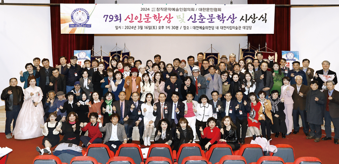 지난 3월 16일 대전예술의전당 내 시립미술관 대강당에서 (사)창작문학예술인협의회와 대한문인협회(김락호 이사장) 주최로 제79회 대한문학세계 신인문학상 및 신춘문학상 시상식이 열렸다. 이날 행사는 박영애 부이사장의 개회사를 시작으로, 전국의 시인, 작가 등이 모여 문학의 향연을 즐겼다.