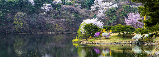 호암미술관과 용인에서 가장 큰 벚나무 군락지인 가실 벚꽃 단지는 주변의 호암저수지와 함께 4월이면 환상적인 꽃의 향연이 펼쳐진다. 호암미술관은 삼성의 창업주인 고 이병철 회장이 수집한 예술품이 전시되어 있어 문화와 예술에 대한 갈증을 해소해 준다. 특히 4월에는 미술관 내에 조성된 2만여 평의 대지 위 아름다운 정원인 희원을 둘러볼 수 있다.