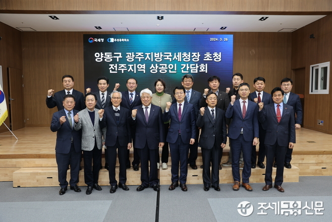 전주상공회의소(회장 김정태)는 지난 26일 7층 대회의실에서 양동구 광주지방국세청장을 초청, 지역상공인들과 세정 간담회를 가졌다며 이 같이 밝혔다.