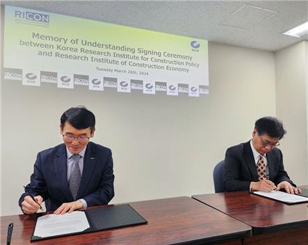 27일 건설정책연구원은 전날 일본 도쿄에서 일본 건설경제연구소(RICE)와 상호 연구협력 및 교류를 위한 업무협약(MOU)을 체결했다고 밝혔다.