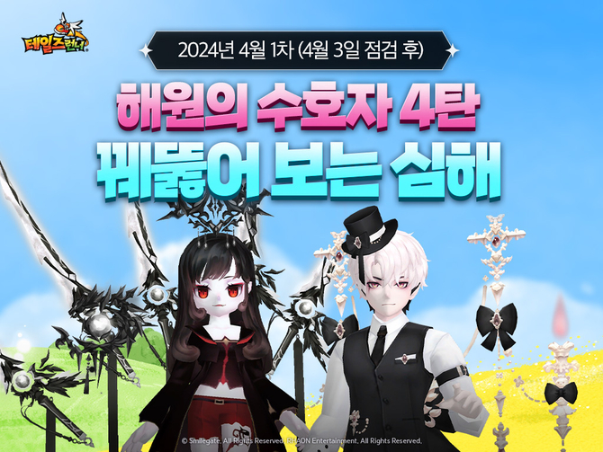 또 상점 내 신규 아이템으로 프레스티지 등급 아이템인 ‘칠흑의 사냥꾼’과 ‘어둠의 사냥꾼’을 포함한 10종을 ‘휴몽의 뽑기판’에서 획득할 수 있다. ‘칠흑의 사냥’꾼 크라운, 소드, 서클 아이템 3종을 모두 획득한 이용자들에게는 신규 칭호 ‘다크니스’도 주어진다. 끝으로, 상점 내 ‘엘레강스 코스튬 박스’가 추가돼 이용자들은 ‘우아한 버틀러’, ‘메이드 복장’ 세트를 포함한 신규 아이템 10종을 획득할 수 있다.
