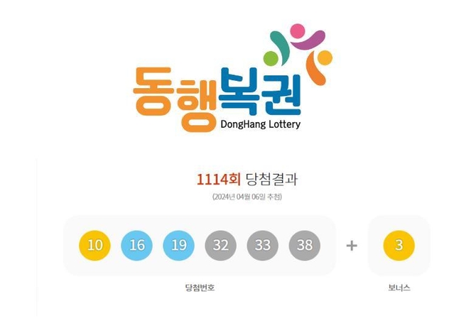 (조세금융신문=박청하 기자) 제1114회 로또복권 추첨에서 '10, 16, 19, 32, 33, 38'이 1등 당첨번호로 뽑혔다. 2등 보너스 번호는 '3'이다.